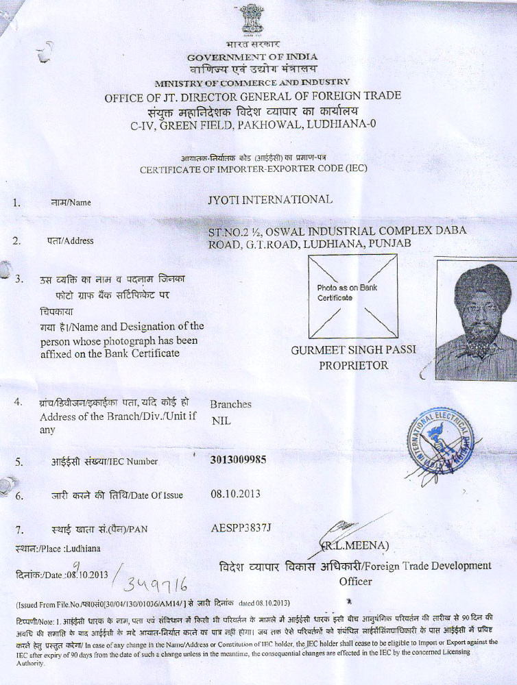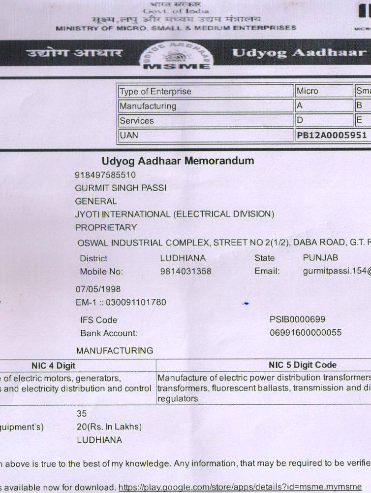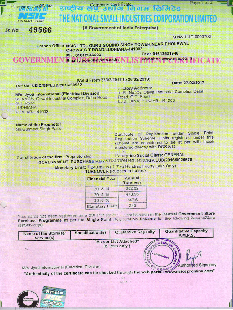 - St.No. 21/2", Industrial Oswal Complex, G.T. Road Daba Road, Ludhiana - 141 001.(Punjab India).